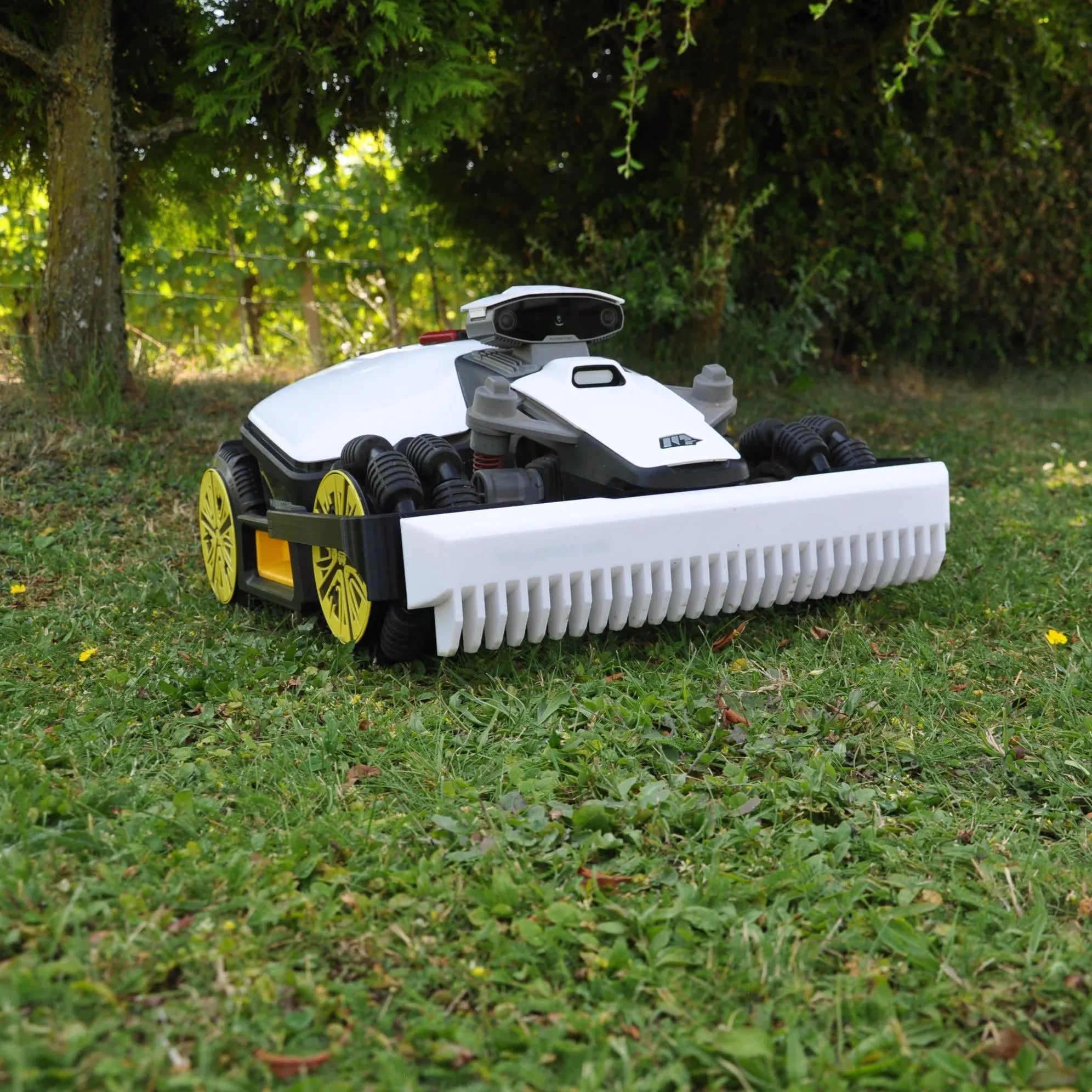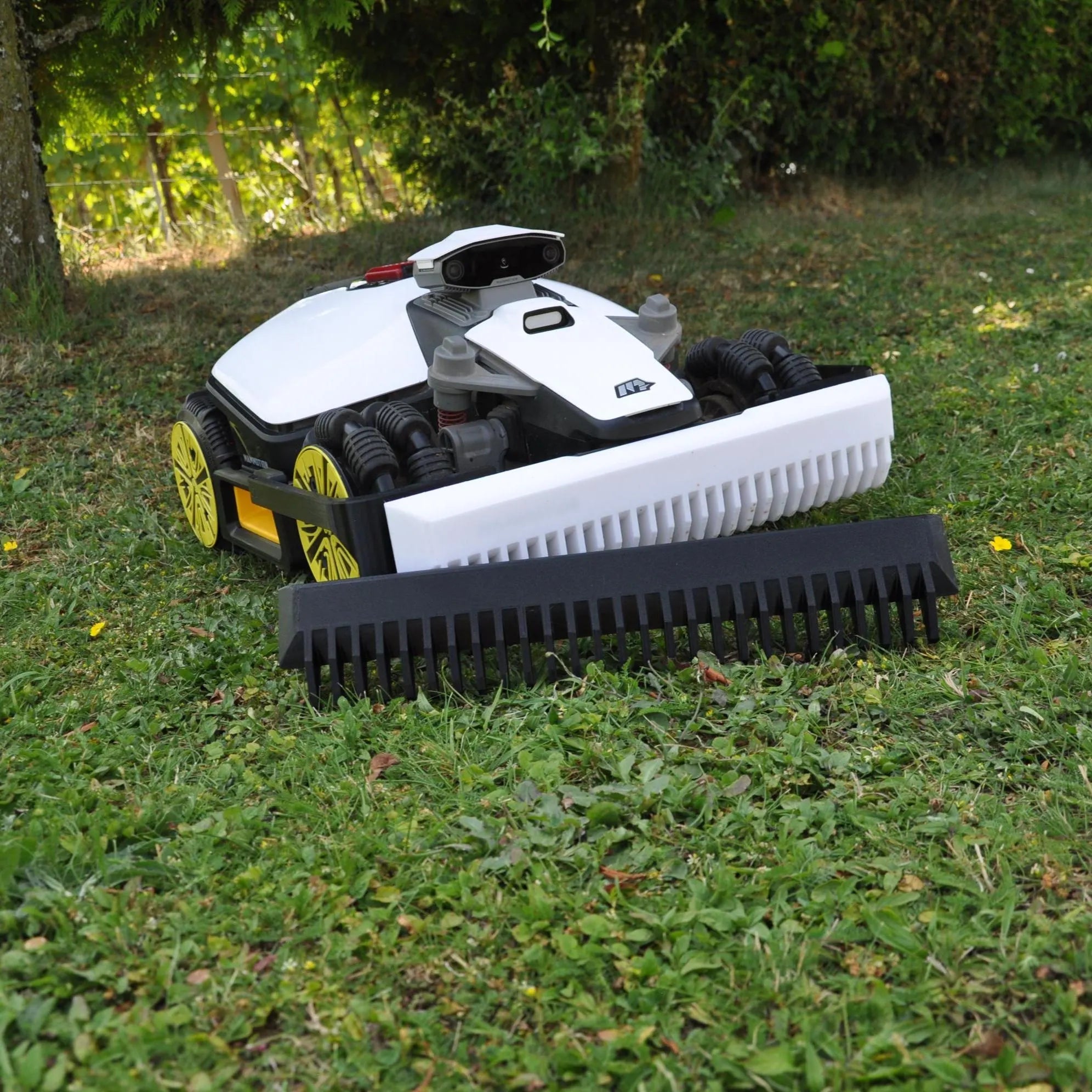 Enhanced protection with integrated rake functionality for your robotic lawn mower.
