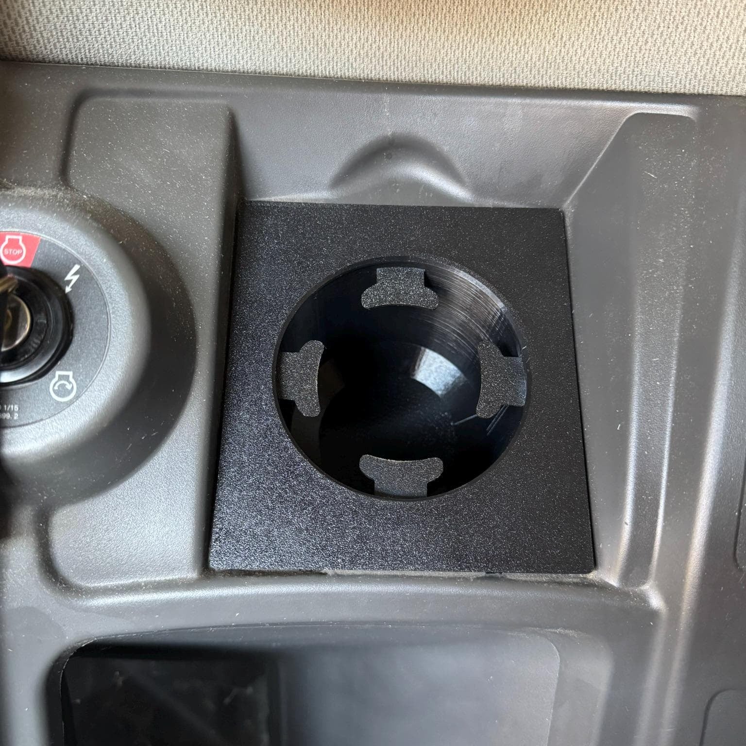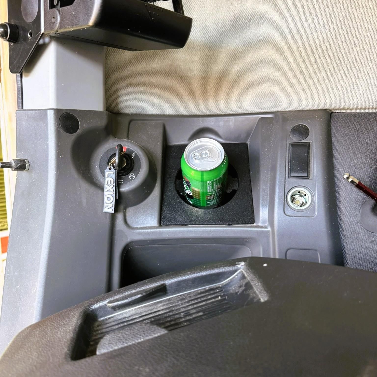 Upgrade your CLAAS Lexion or Tucano combine with our custom-designed Plug & Play cup holder, perfectly suited for models without an integrated computer, featuring the standard grey plastic side panel.