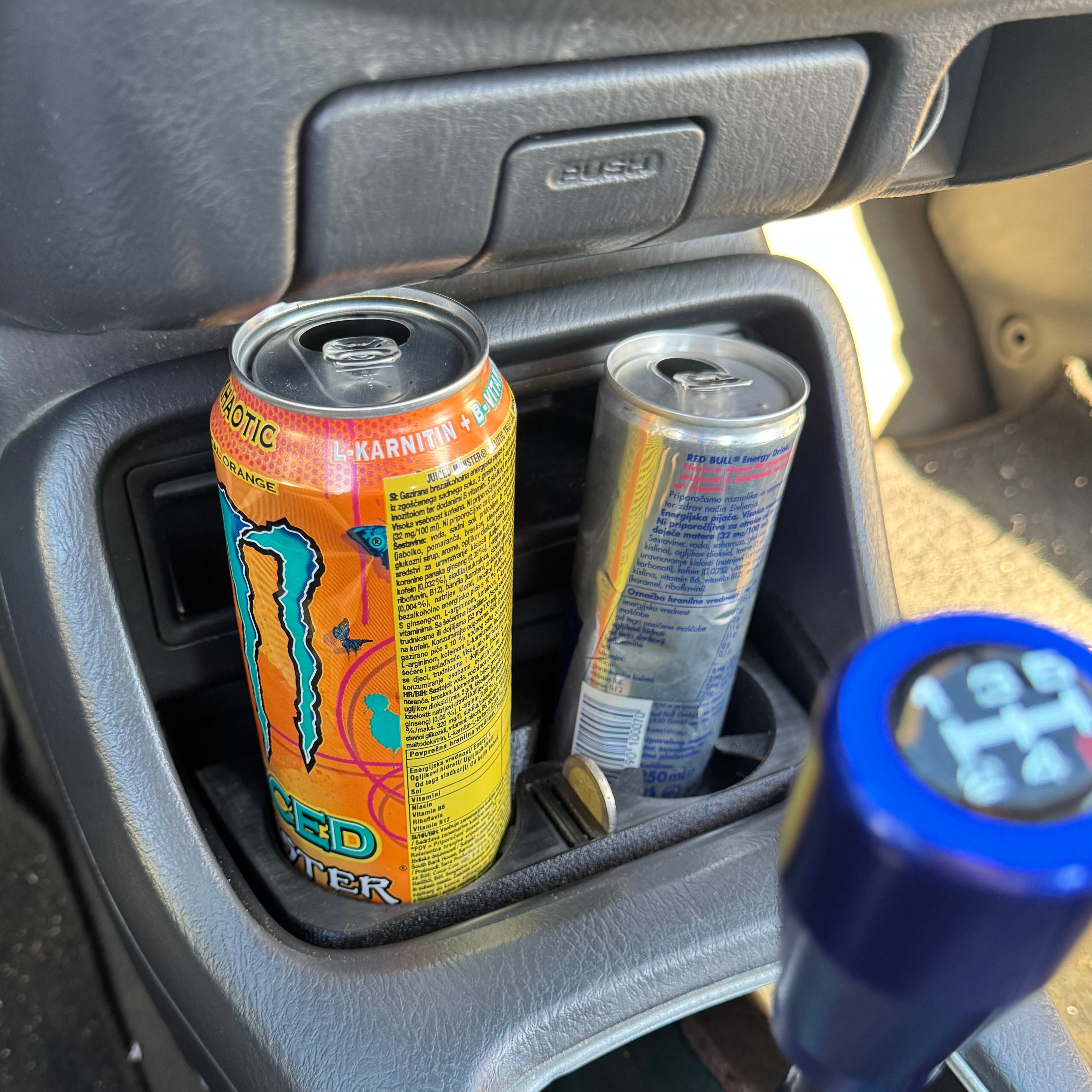 Holds two drinks up to 500 ml securely in place during driving – ideal for bottles or cans.